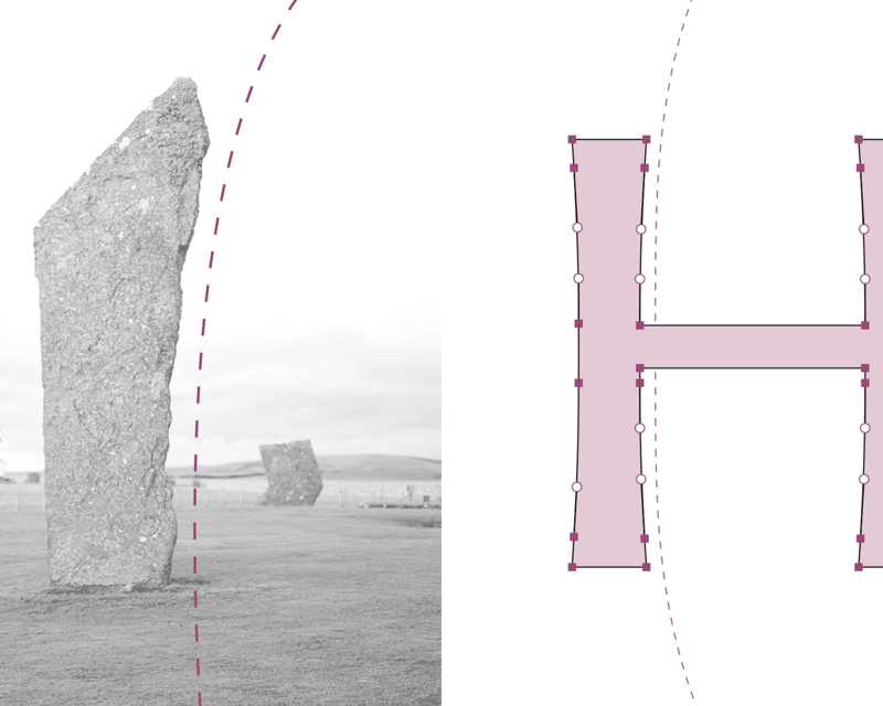 We created a typeface style that paid homage to one of the most striking features of Orkney; the various Neolithic monuments found scattered across the islands. Using these strong shapes as a basis, we designed a flared serif style with a generous x-height, open counters and measured proportions, optimised for clarity and fluency.