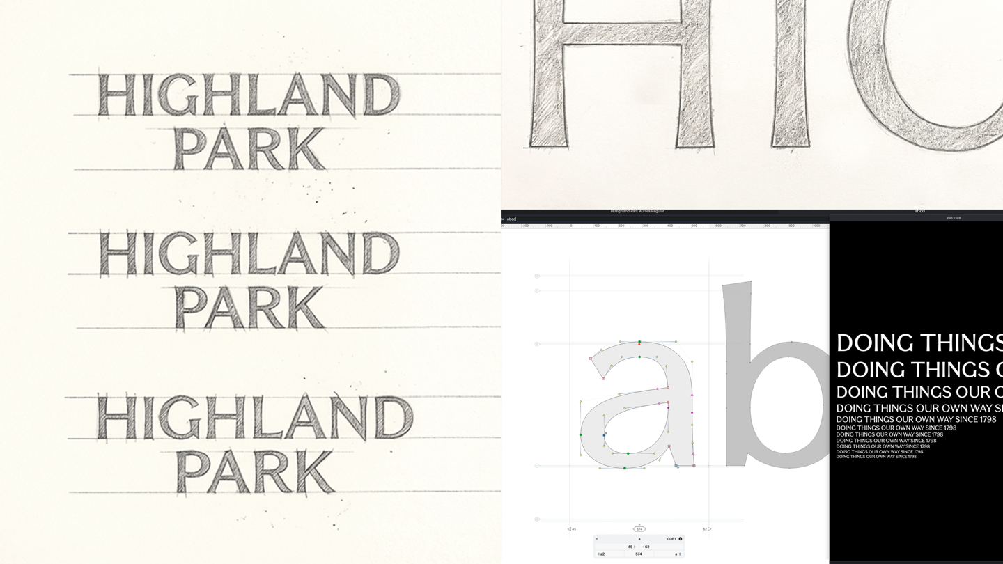 As part of a full rebranding exercise carried out by our sister company D8, we were asked to create a brand typeface that would encapsulate a new, lighter version Highland Park after years of being heavily associated with Viking lore and a more brooding visual style.